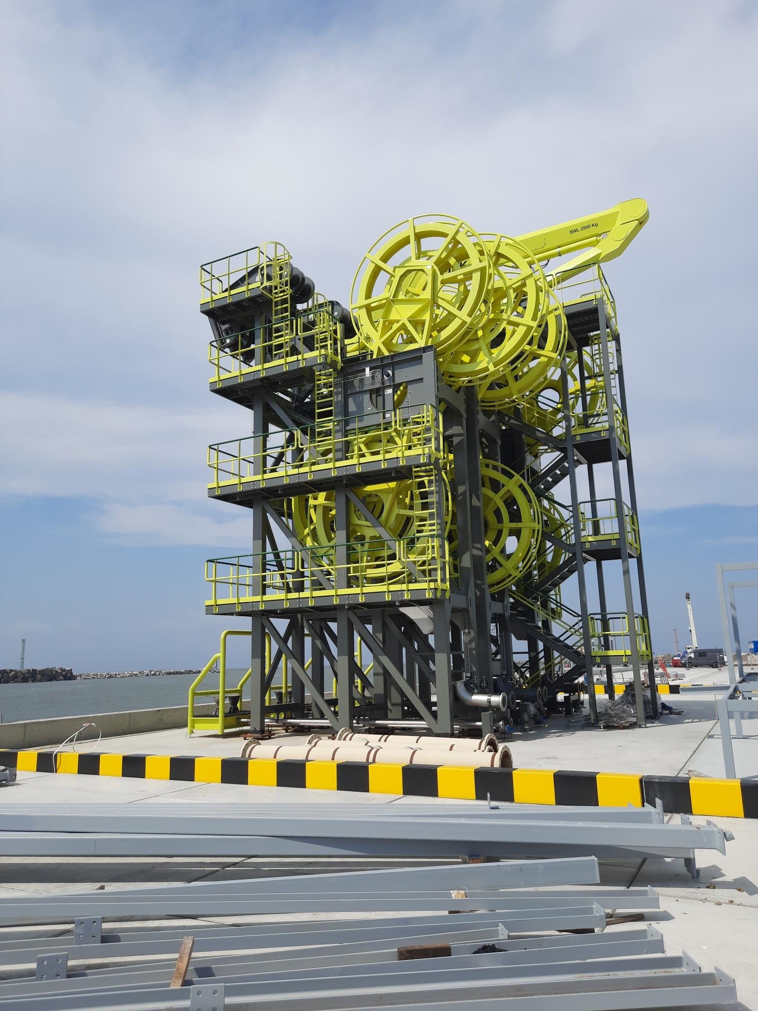 The equipment will allow for the handling while simultaneously using five marine hoses and a sixth hose for the outflow of BOG (boil-off gas). All installed equipment and systems will need to be inspected and tested out. The use of the quay section is expected to start in the last quarter of 2021.