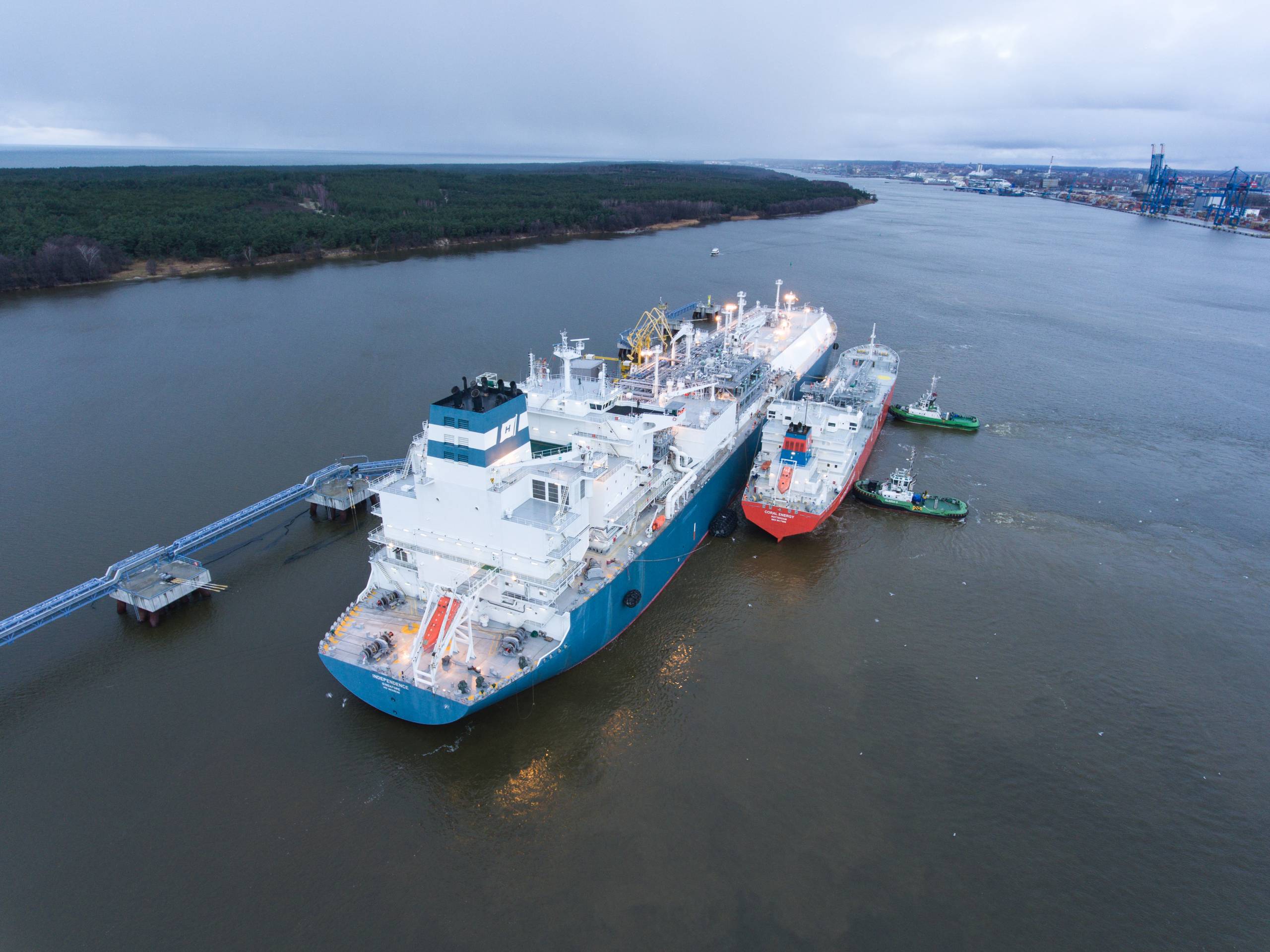 Apžiūros sausuosiuose dokuose laivams su išdujinimo įranga (FSRU) Europoje paprastai vyksta Prancūzijos, Ispanijos ar Portugalijos uostų laivų remonto įmonėse. Kur tiksliai bus nukreipiamas „Independence“ paaiškės rudenį, bendrai sutarus esamam laivo-saugyklos savininkui „Hoegh LNG“ ir KN.