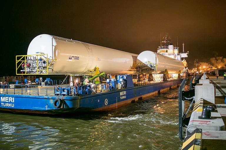 Iš Čekijoje esančios SGD talpyklų statyklos „Chart Ferox, a.s.“ išplukdytos 3 iš 5 SGD talpų, skirtų antžeminei SGD paskirstymo stočiai, kurios projektą įgyvendina naftos produktų ir suskystintųjų gamtinių dujų operatorė KN (AB „Klaipėdos nafta“). Kiekviena SGD talpa dėl nestandartinio dydžio buvo transportuojama atskirai. Vienos SGD talpos perkėlimo ir transportavimo…